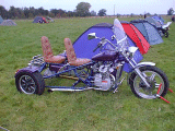 Another Friday - another rally. By late afternoon we were on the road to Wem, or at least on the road that leads towards Wem. Finding the site proved to be no problem - Lower Lacon caravan park - certainly large enough, most definitely flat enough and just oozing the kind of mud that ralliest love. Most sensible folks parked on the tarmac and carried their gear onto the field. Us trike riders don't find mud to be that much of a problem - can't fall off - ( smug bastard mode ).