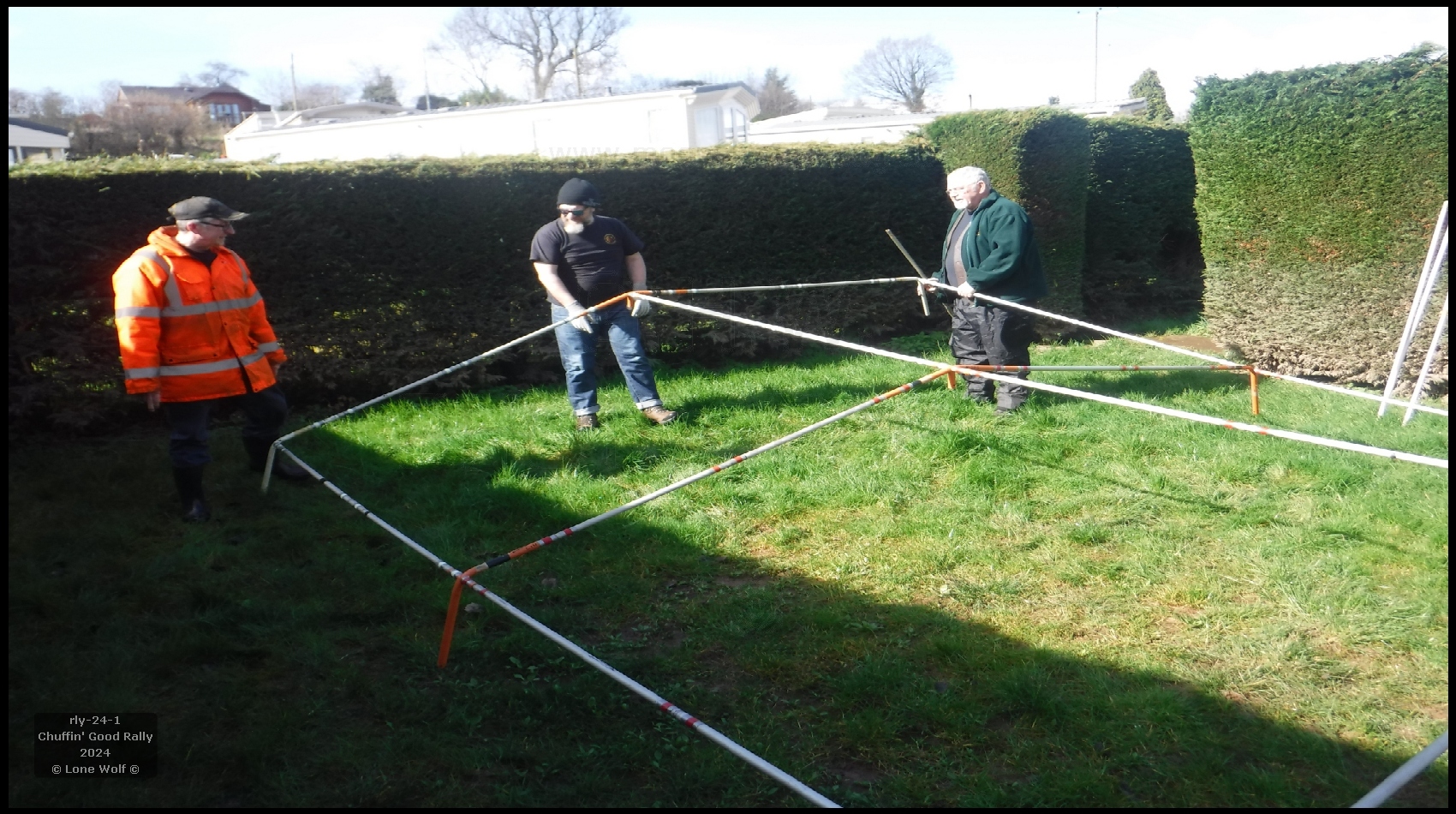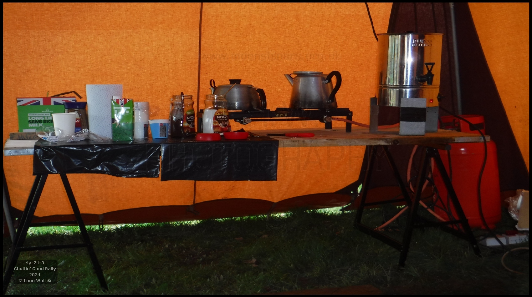 Well it's that time of year again, so without further ado it's off down to the banks of the river Severn. We'd had a lot of rain over the last few weeks, but luckily the river was on the way down rather than up. This still didn't mean the field was dry. The right hand side of the field was well under water, but it still left us plenty of room to camp. As per normal, putting the control tent up was a "work of art", though I ain't saying what kind of artists were performing it.