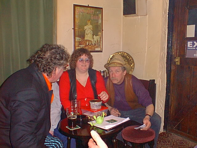 Sam the Pram , Kim and Gordon swapping hard earned cash for rally badges.