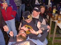 Saturday night saw us back up the Wight Mouse, where there seemed to be a distinct lack of bikers. This pub is normally heaving with folks from the rally, eating, drinking and generally having a good time. Maybe the price of the minibus had put people off ? Following the pub - the marquee - and much silliness.