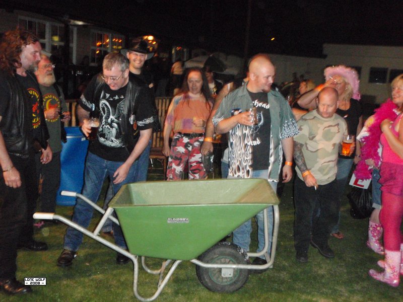 Moonshiners + Wheelbarrow + Hen Party = Much mirth.