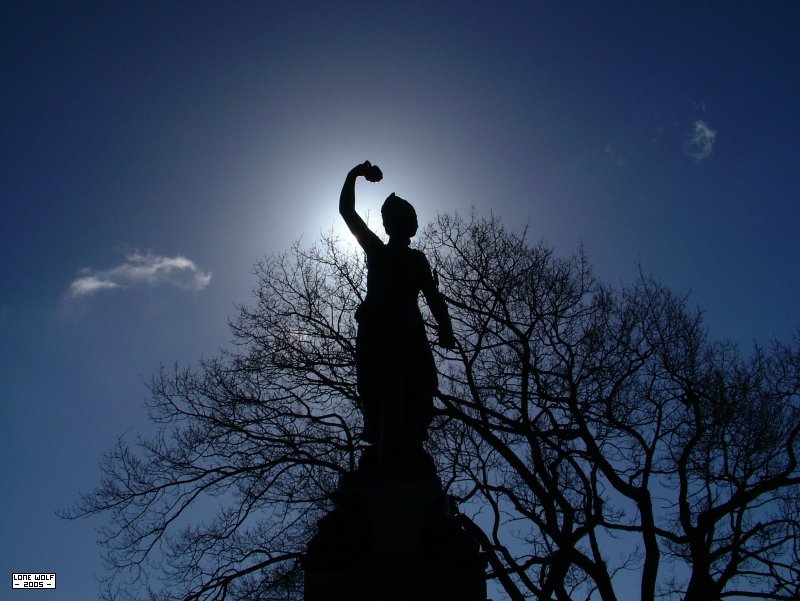 Sabrina - the Goddess of the Severn - camera settings tweaked to give a jolly silhouette.