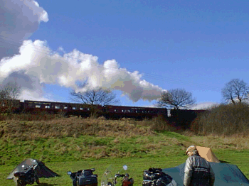 Once again, we had decided to hold our "Unplugged" rally on the banks of the river Severn, at Hampton Loade. The folks that came last year said they liked this site because of its proximity to the Severn Valley Railway. There's something about bikers and steam trains. Great noisy, hissing, belching, farting monsters that make lots of noise, and the steam trains are pretty good too.