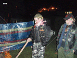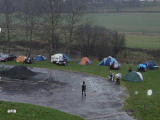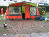 Come rain, mud, Hell and High Water - nothing stops a determined Moonshiner. Once again I tormented people in the control tent. This time, my weapon of choice was the Banjo. What a terrible dilemma - do you stay in the warm, dry tent and suffer my version of "Whiskey in the jar" - or do you risk going out into the cold, dark, wet night ? A suitable compromise would have been to throw me out into the cold, dark, wet night, and huddle round the now cheerfully blazing Banjo, but folks can't think straight when they are drunk. If nothing else, the rain appreciated my music for it came down by the bucketful, just to hear me play. Even the pub wasn't safe. By that I don't mean that I went and played there, I mean the rain found its way in through various holes in the roof. Quite a few tents leaked in, and quite a few bikes didn't want to start in the morning. One particular bike didn't want to start, but not because of the rain, it was due to the rider losing his keys. Of course, it just had to be a bloody Moonshiner didn't it ? Don't worry, your secret's safe with us. After applying the universal ignition key - which oddly enough is hammer shaped, with a kind of screwdriver shaped bit, we got the bike started. What's the betting the keys turn up - probably packed away somewhere ? Speaking of packing away - that's all that was now left to do. We'd already been round the field with our "tidy bags", like an army of rather damp, squelchy Wombles, and no litter survived our mass onslaught. The next victim was the control tent - at least the rain had now stopped.